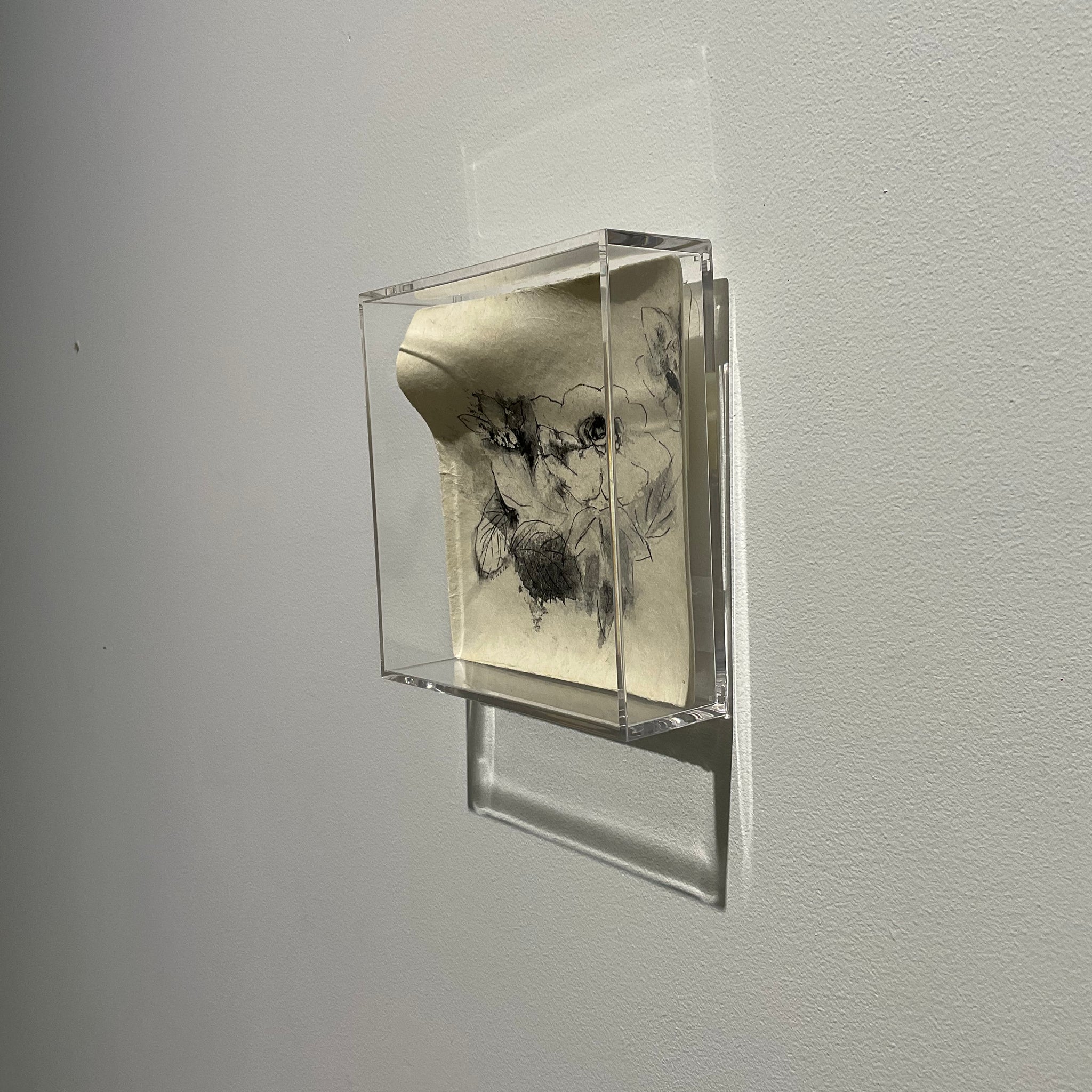 Mot japonais; WA signifie paix et SARA signifie assiette ou renouveau Sumi-e sur washi marouflé sur carton (fait de fibres de bambou et bagasse, résidu de tige de canne à sucre). 15 X 15 CM (6" X 6 »), 2019, monté sur plexiglas